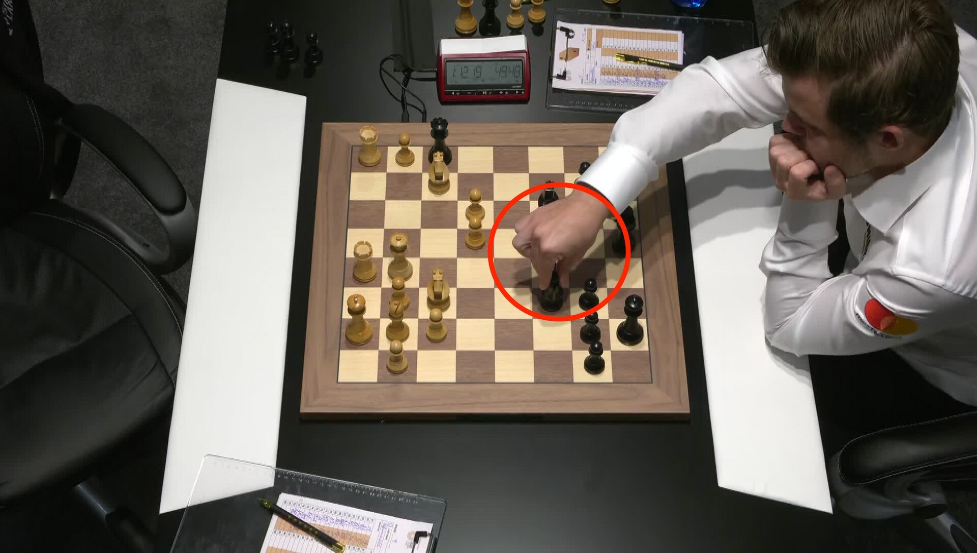 Poco più di due ore dopo aver giocato la partita di martedì, Magnus Carlsen ha toccato il suo cavallo nero senza spostarlo. Invece ha spostato le fattorie.